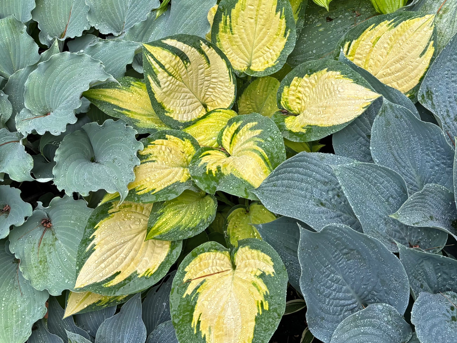 - Leaves emerge with an amber center surrounded by a blue-green margin. The center of the leaf is cream in summer.