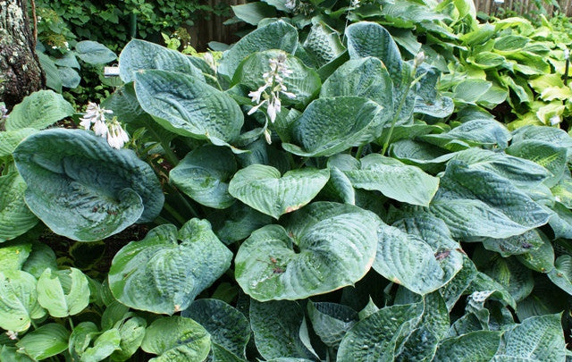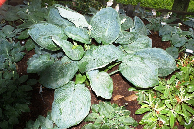 - Leaves emerge intense blue-green in spring on this giant hosta.