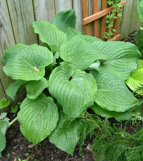 - The thick leaves of the Hosta 'Chodai Ginyo' provide good resistance to slugs.