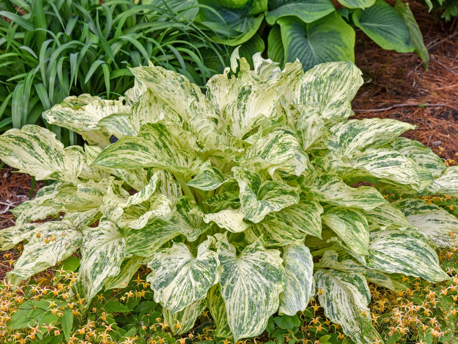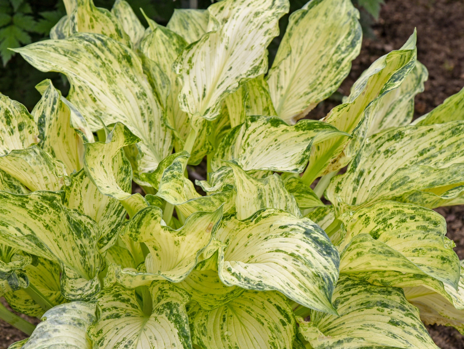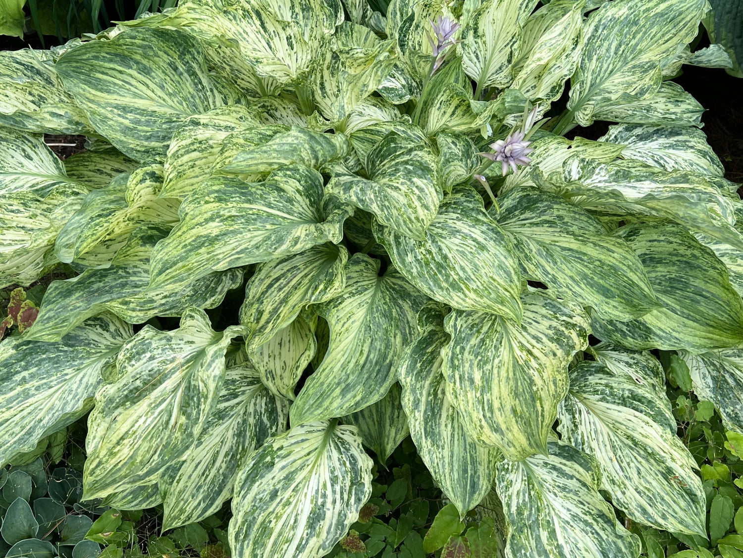 • Exciting new sport of H. 'Empress Wu' with speckled white leaves.