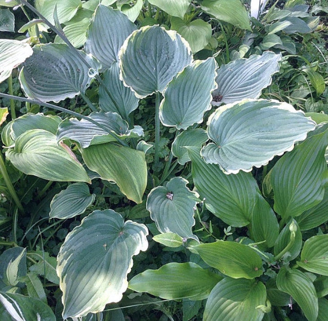 - Blue-green leaves with a nice rippled cream margin.