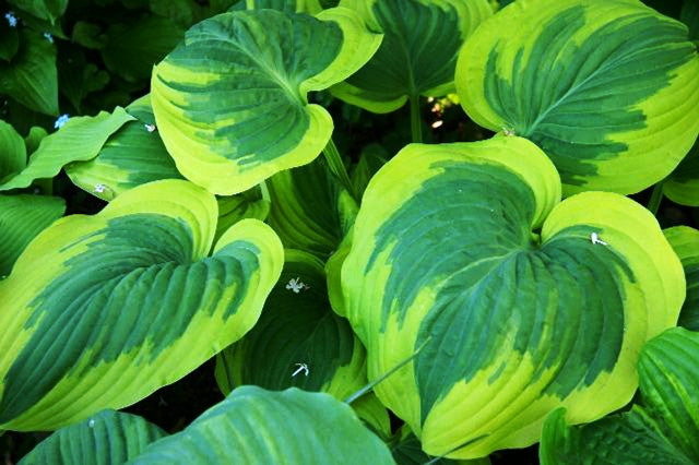 - This hosta shines in spring with its bright yellow margin surrounding the dark green center.