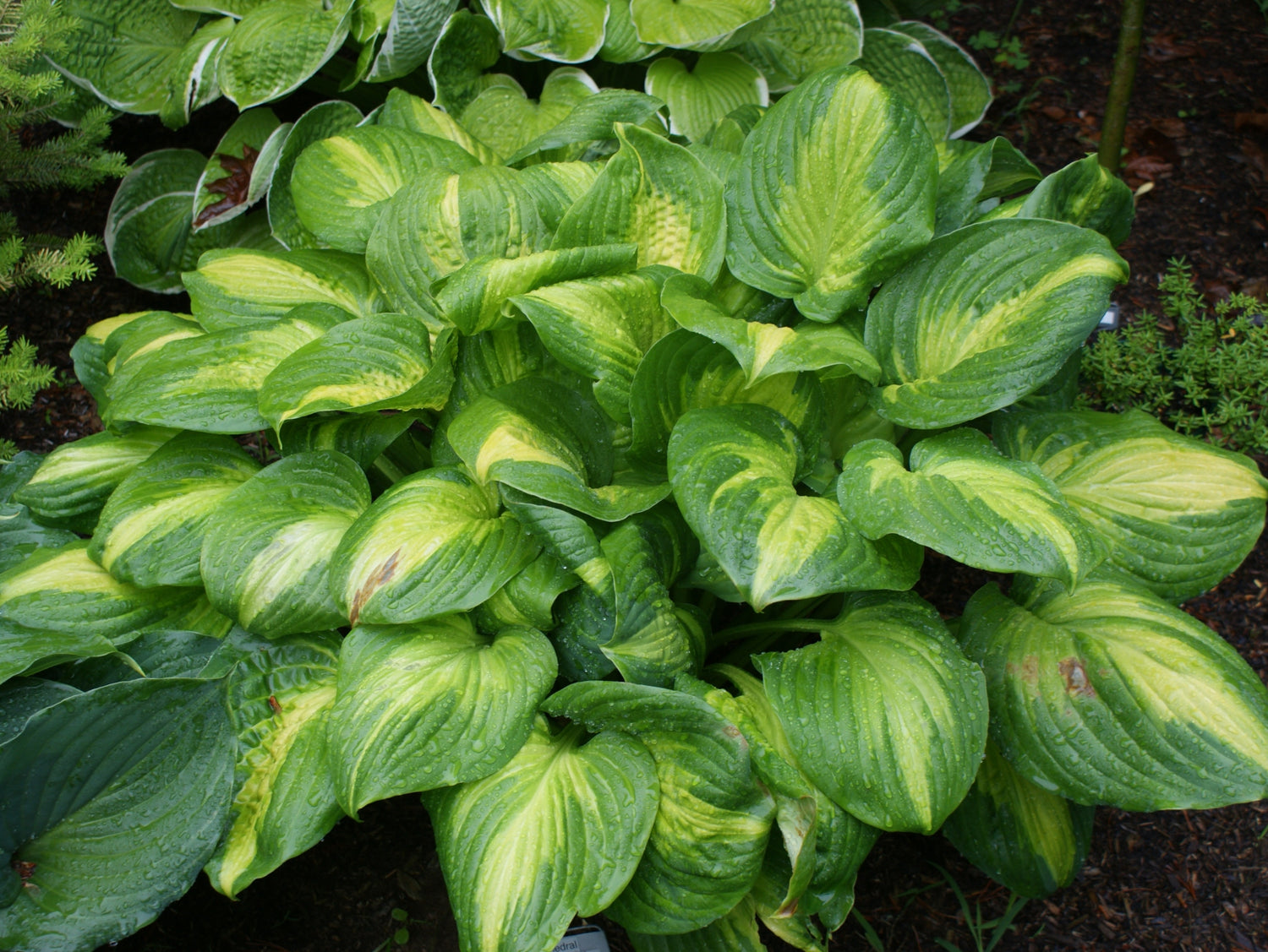 - Hosta 'Cathedral Windows' is a tetraploid sport of Hosta 'Stained Glass' with thicker leaves and a wider green margin.