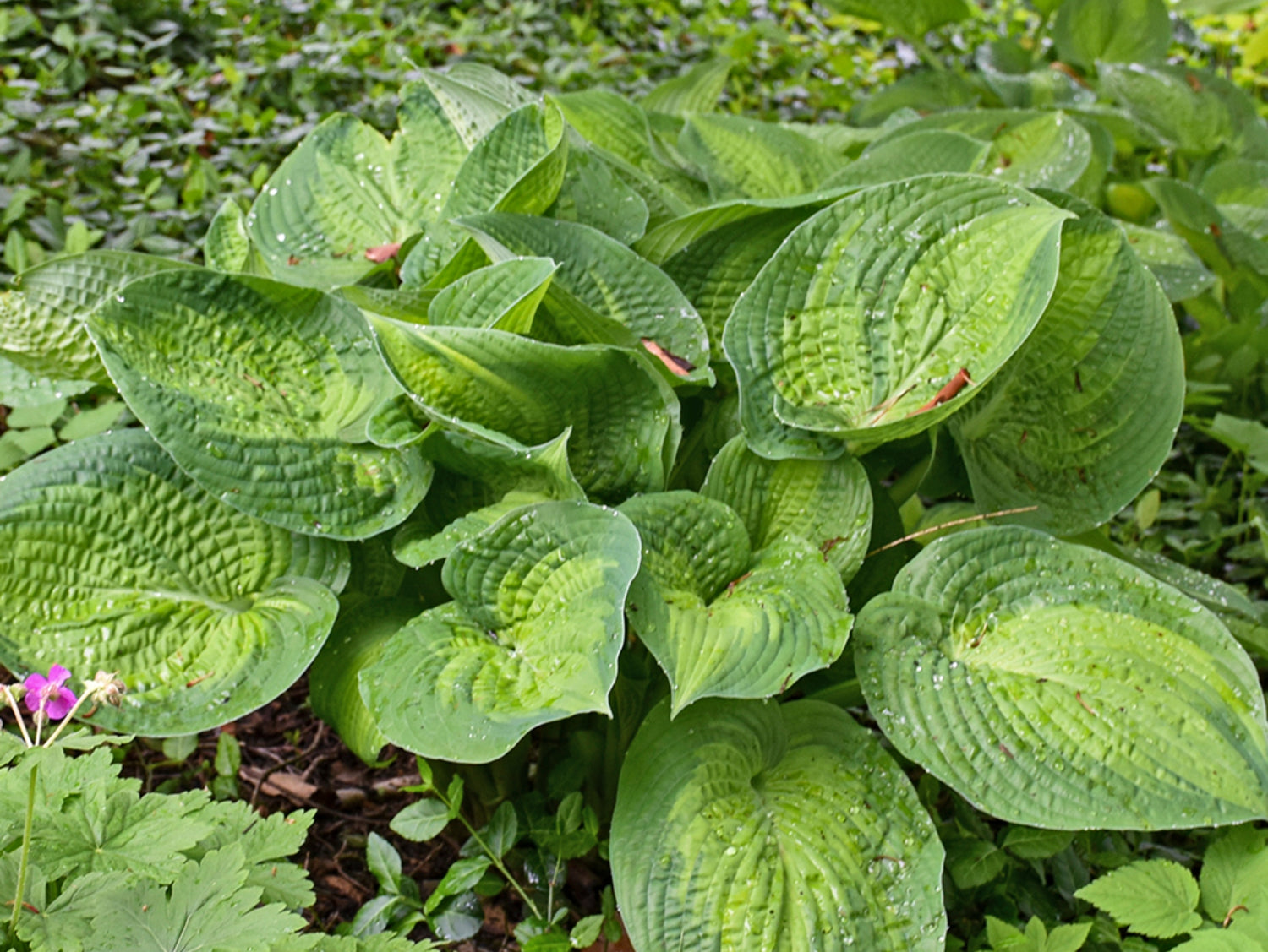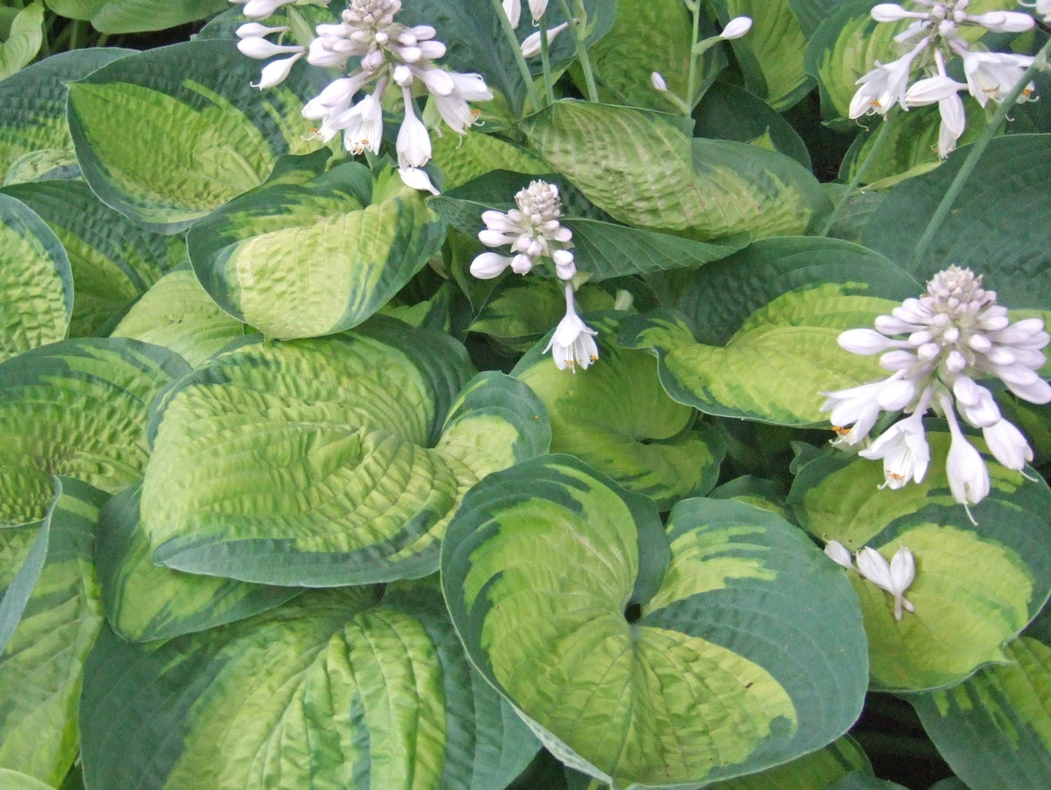 - This large hosta has bright gold leaves with a wide blue-green margin that streaks into the center.