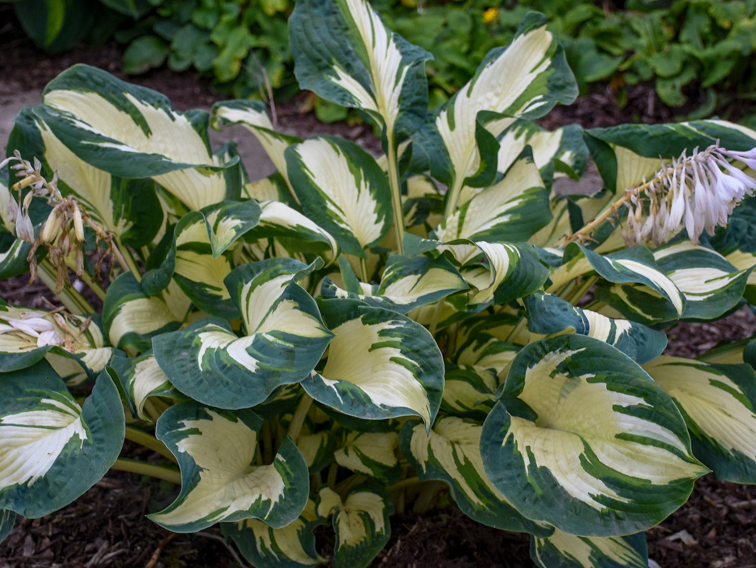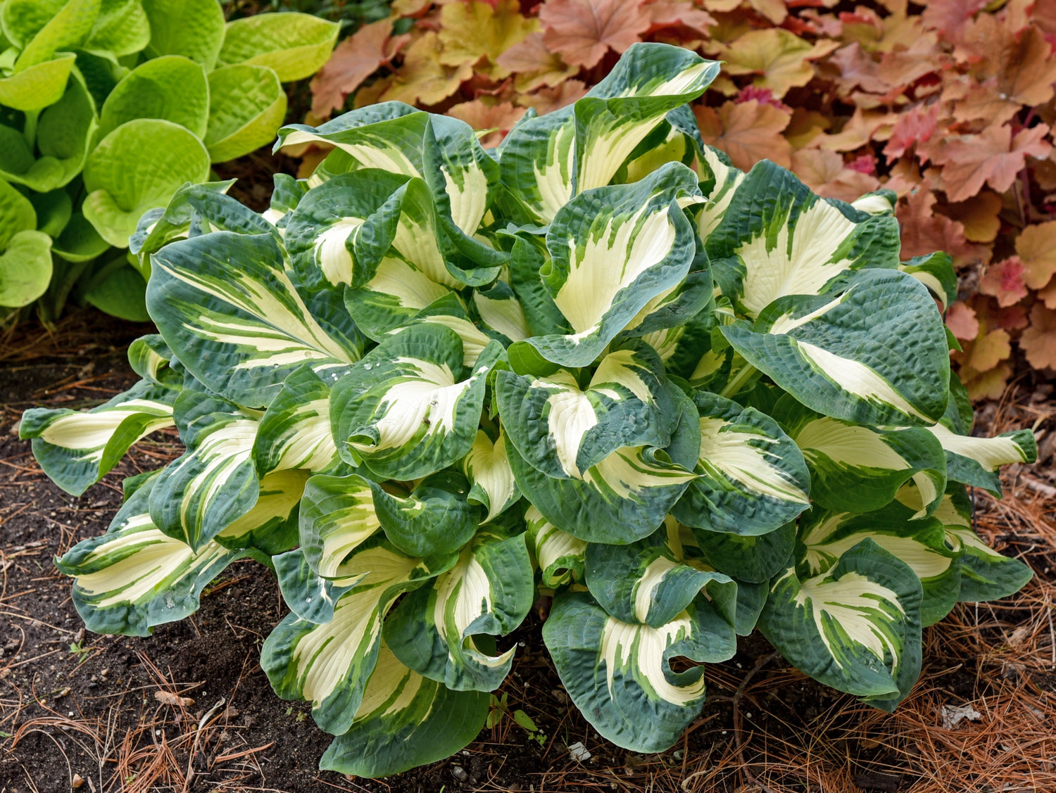 • Bright white leaves in spring have nice blue-green margins. There is a lighter green color between the white centers and blue margin.