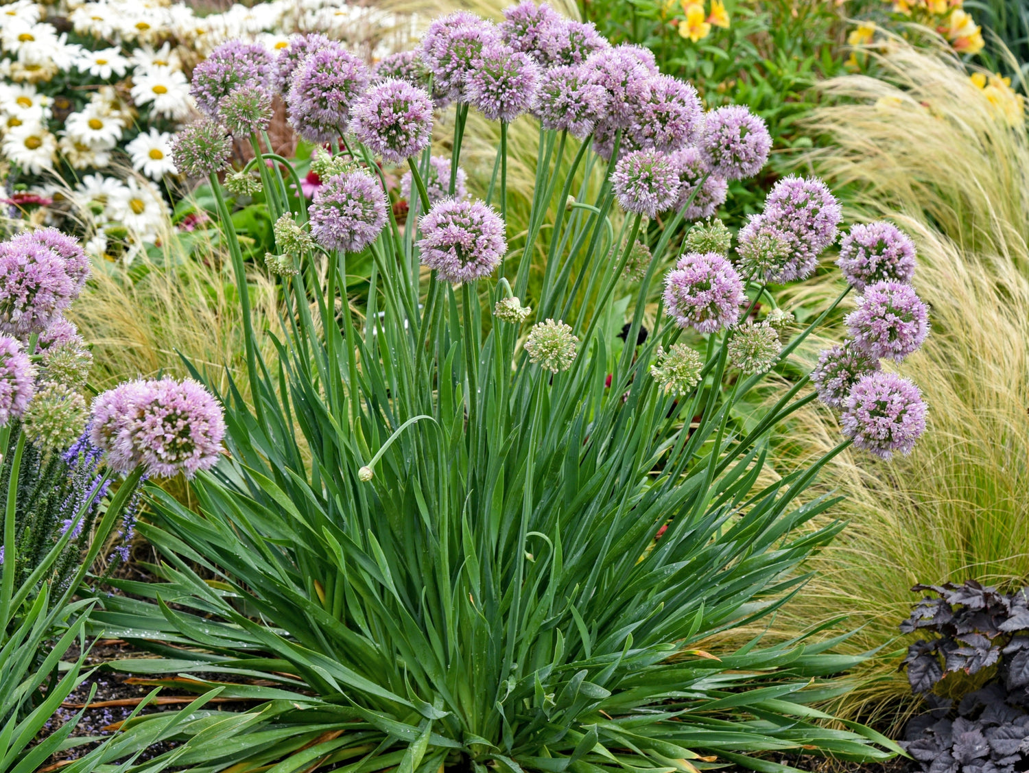 - Compared with the bulb-type varieties like 'Globemaster', this type of Allium will have smaller, more numerous flower clusters, bloom in summer instead of spring, and have foliage that stays attractive through fall.