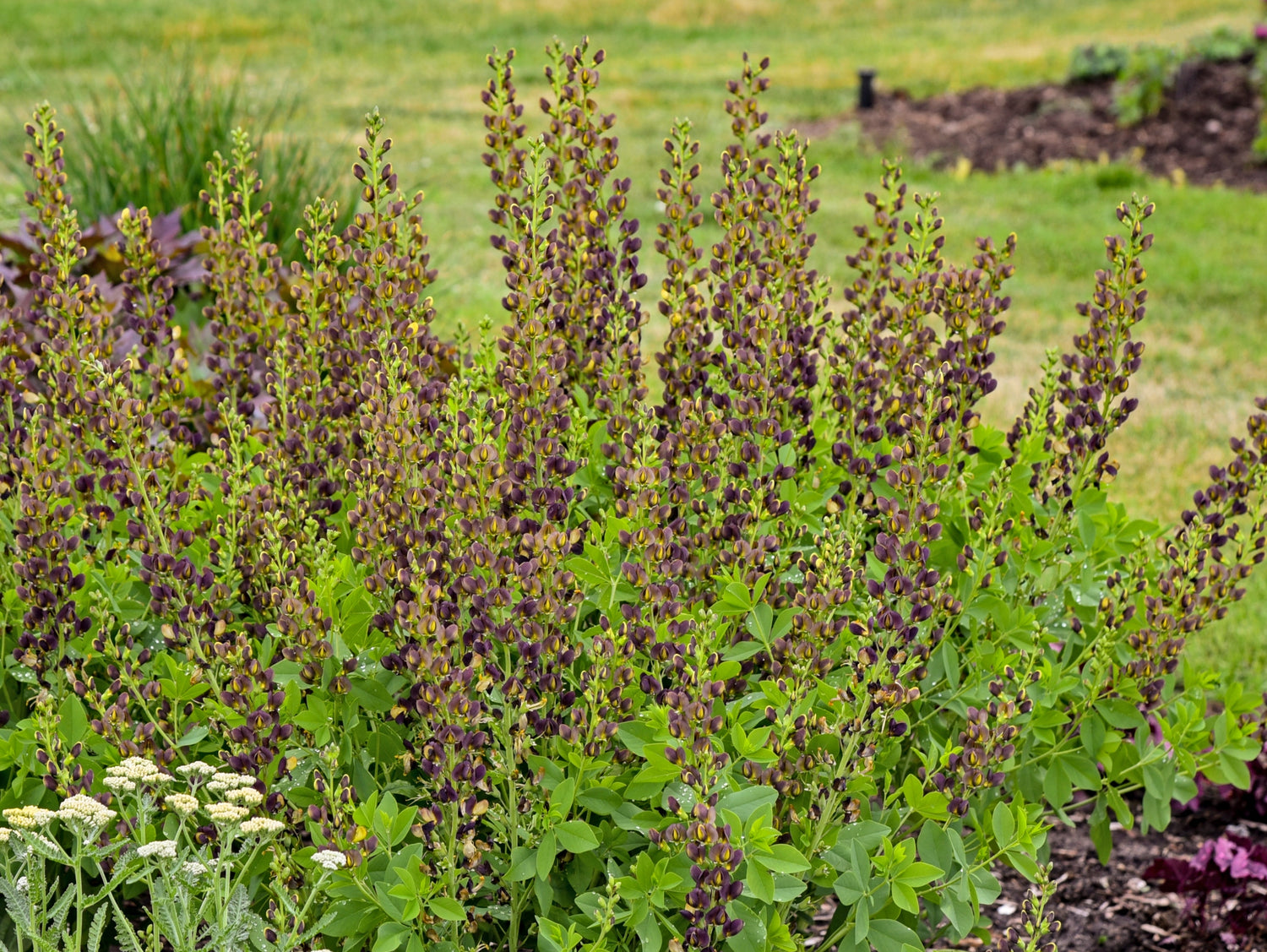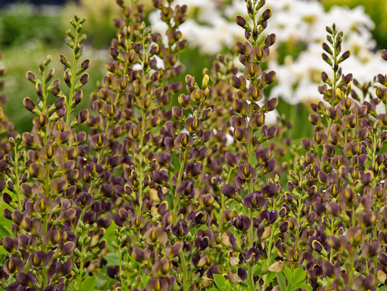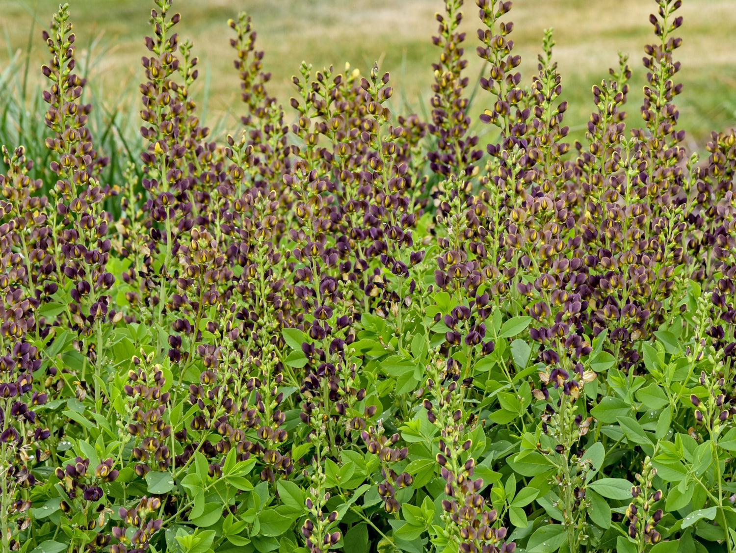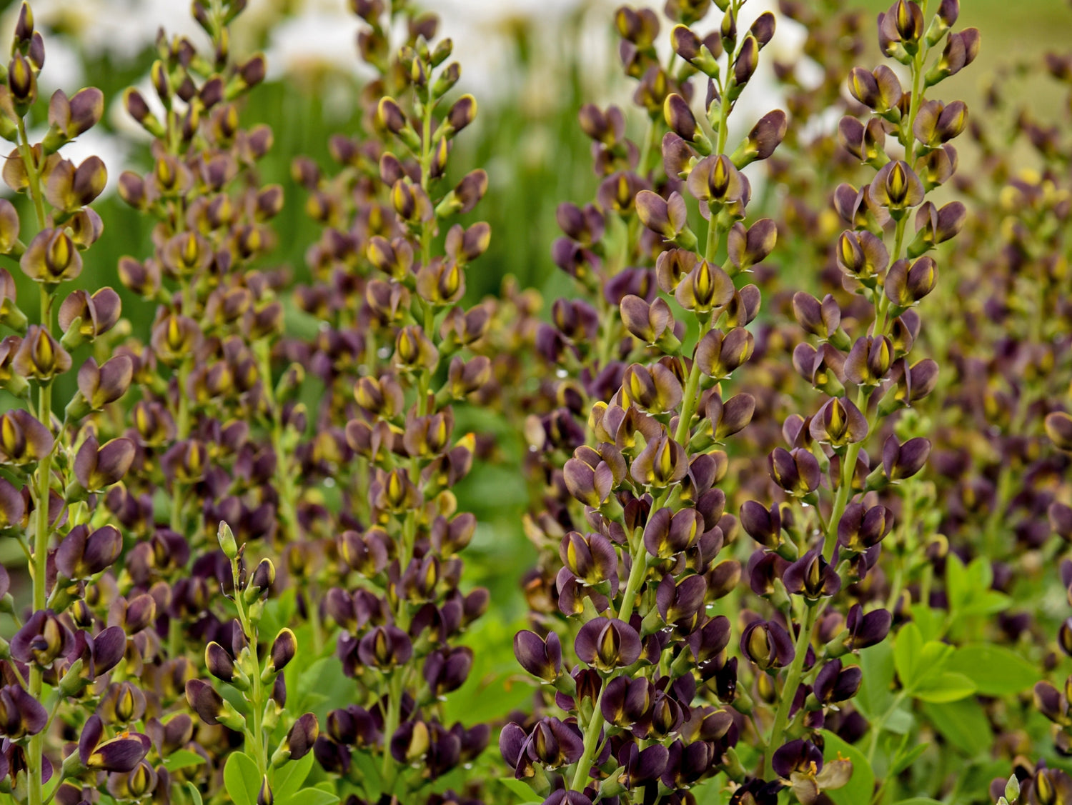 - This Baptisia offers nearly black, charcoal purple flowers.