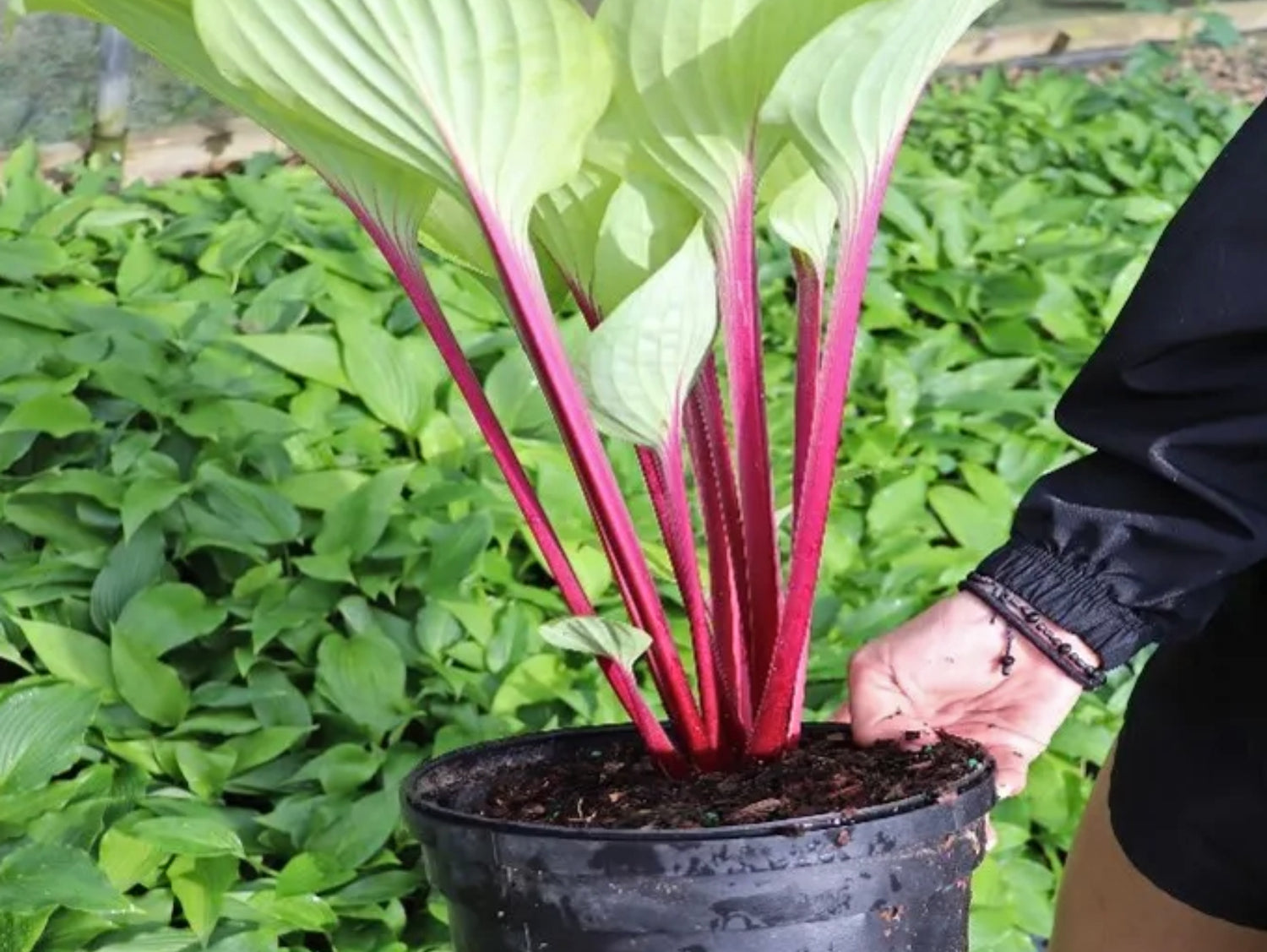 - Breeder Bob Solberg loves his yellow hostas on red petioles but he has been working on getting one with a strong upright habit to help show off the red.