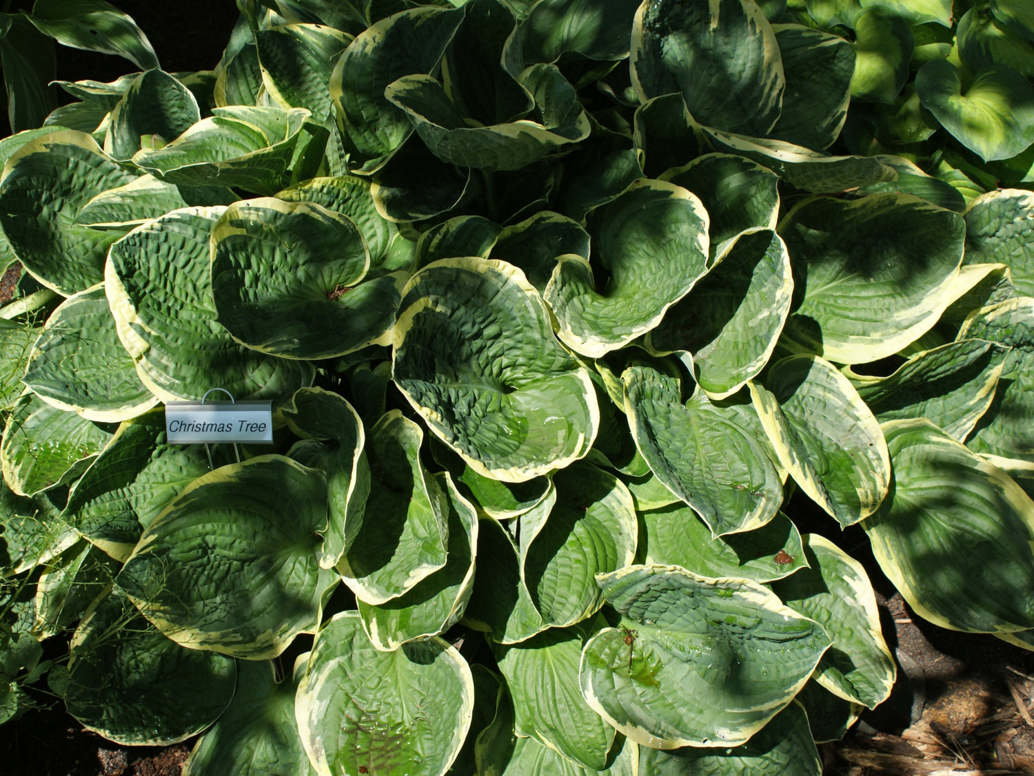 - Hosta 'Christmas Tree' Hosta produces dark green leaves with a thin yellow margin.