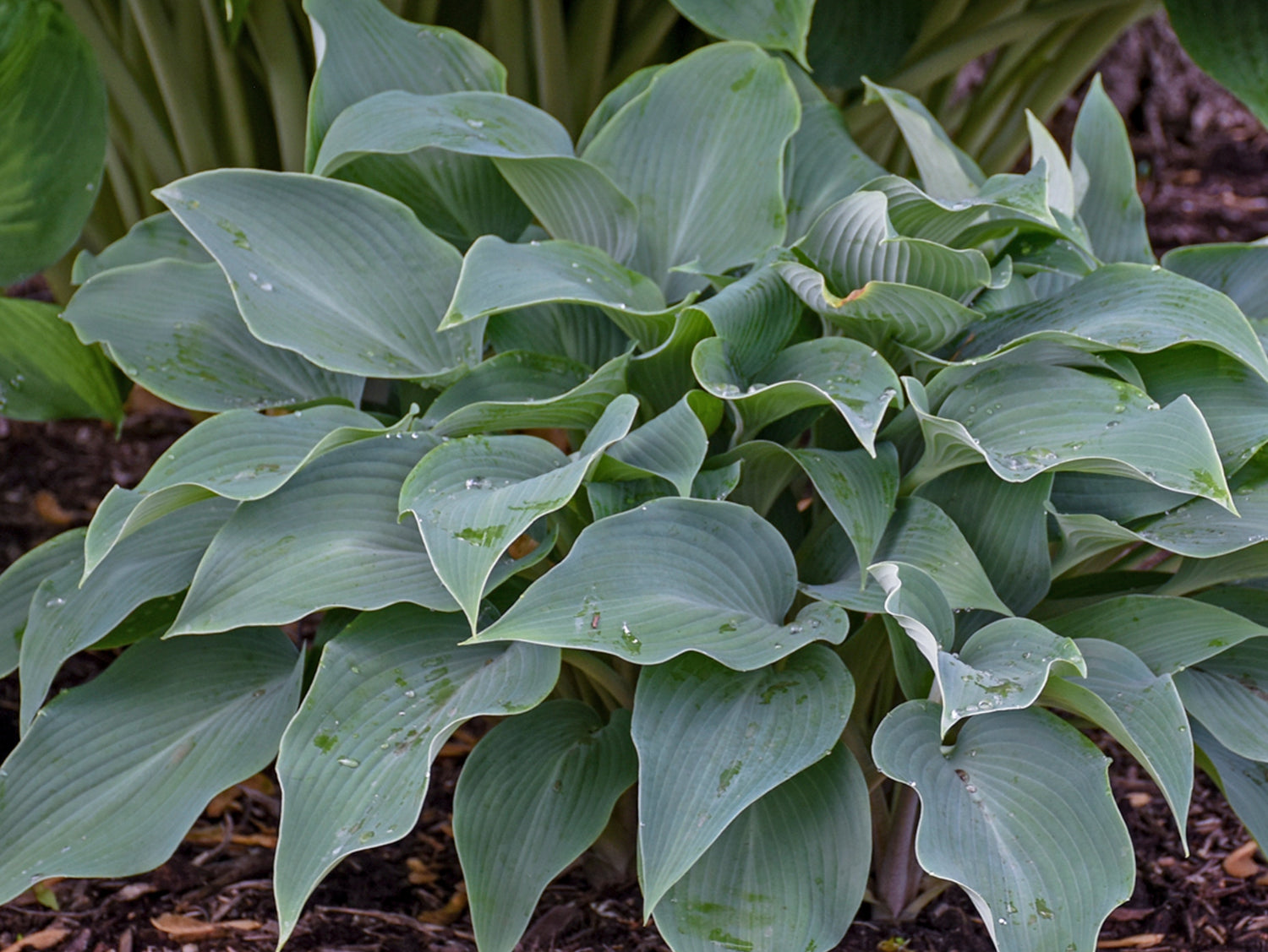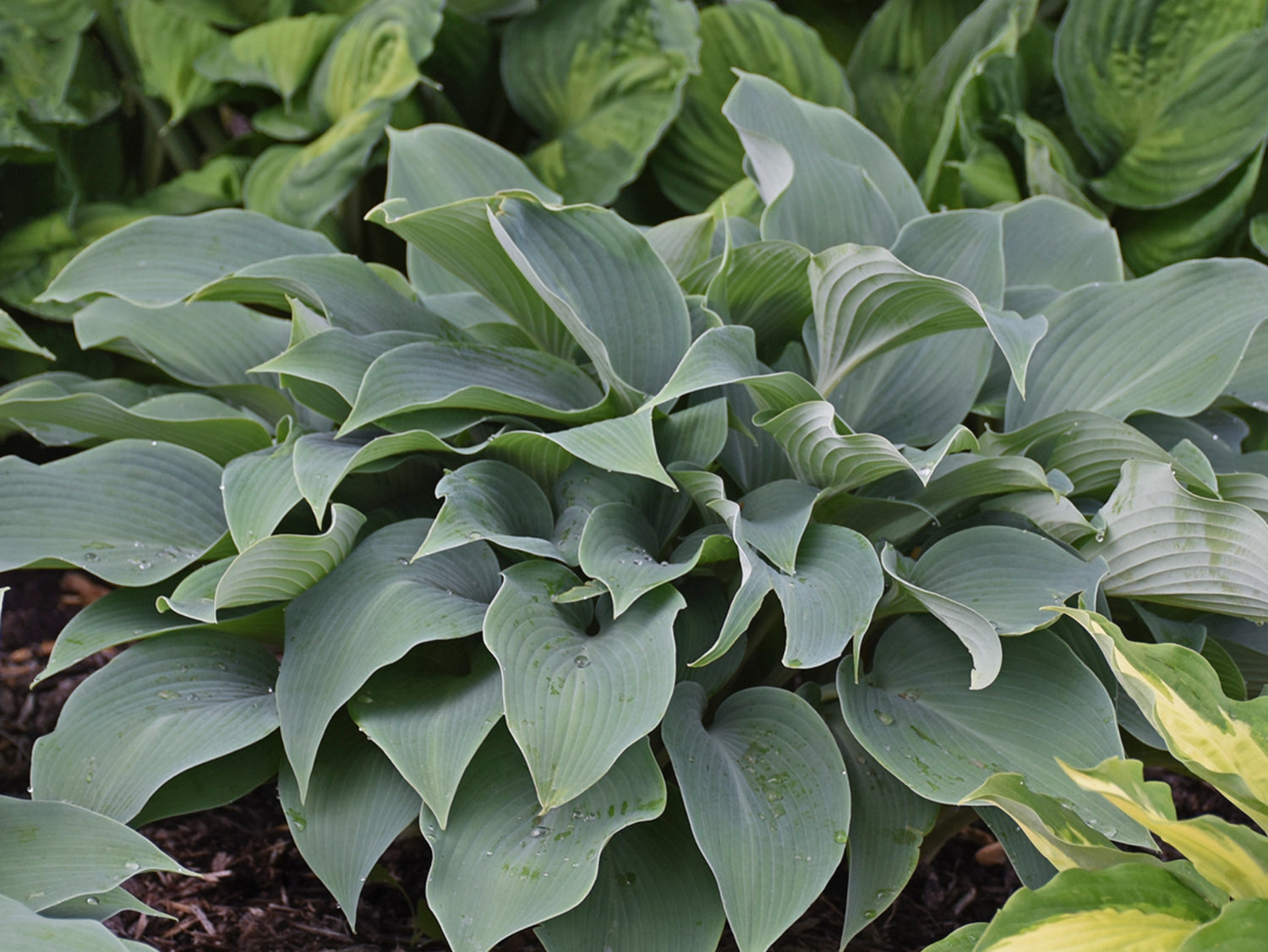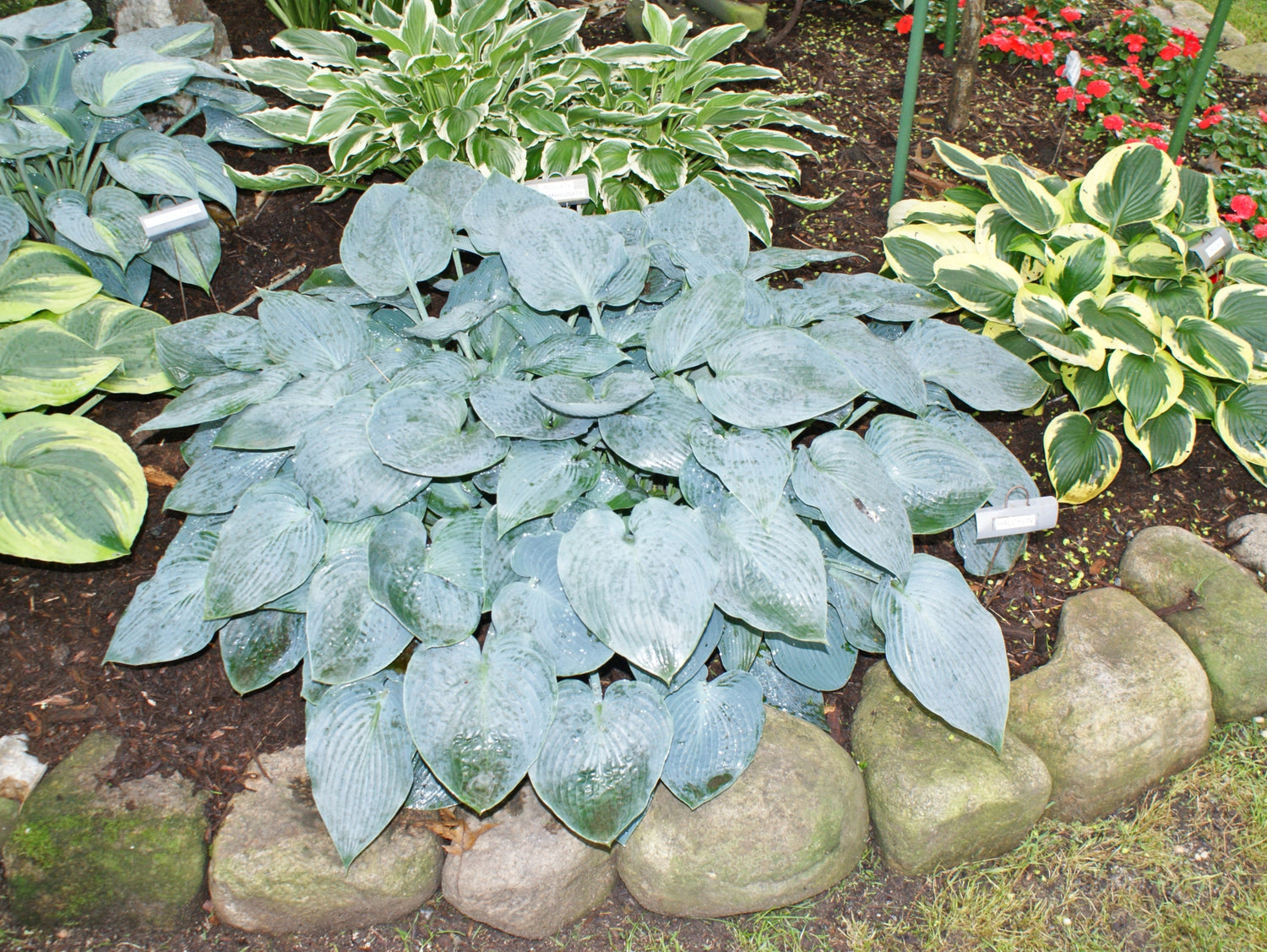 - Hosta 'Halcyon' is a great hosta that performs superbly in the shade garden with its heart-shaped blue leaves.