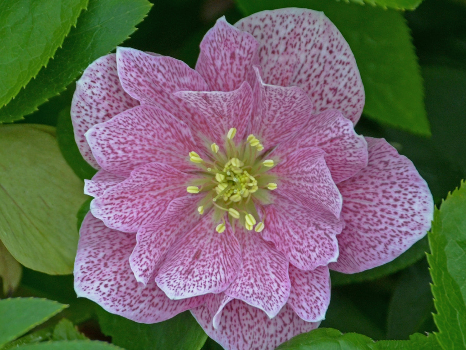 - Mature specimens have 40-60 blooms per plant. The large flowers are soft pink with dark pink speckling.