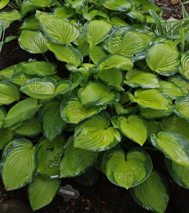 - Hosta 'Lunar Orbit' hosta is a sport of H. 'August Moon' with an added dark green margin.
