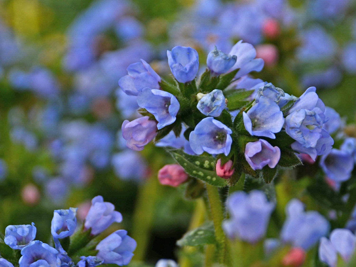 - Pulmonaria is an underused perennial that grows well in shady gardens. It is especially attractive when planted among hostas, ferns, and brunneras.
